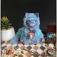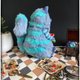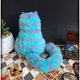 猫是采用混合技术制成的。毛皮是人造的,非常柔软,让人不想让猫脱离你的手。枪口、爪子、耳朵和真菌均由聚合物黏土制成。牙齿和蘑菇在黑暗中发光。眼睛是玻璃的。尾部插入一个塑胶框架,使尾部可以弯曲。开口销上的手柄会上升和下降。建议温和干燥的护理。由于小细节问题,不建议小朋友玩。