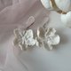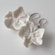 手工制作的珠宝,瓷器制成的耳环。 樱花花是用英国瓷器手工雕刻而成的. 每个花瓣都有一个纹理,像一朵活的花. 花在马弗炉中烧制。 耳环有一个哑光高贵的表面,没有复盖釉. 银制的配件。 花的大小是2.5英寸。