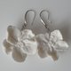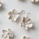 白色花卉耳环。 瓷花可以用肥皂液清洗,用软刷擦。