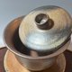 将美国土、日本土、苗栗土以不同比例揉合,制作过程纯手捏(非拉胚机)慢慢成形,基本成型后再修整胚体线条,接着打磨后才完成初胚。