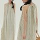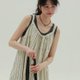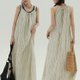 杏色 街角游記掛脖條紋洋裝 慵懶風連身裙 亞麻休閒簡約寬松長裙