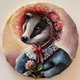 这位可爱优雅的獾女士最初是在棉质拉伸圆形画布上用压克力颜料绘制的。情节很独特——穿着复古连身裙的漂亮獾女士看起来非常迷人。