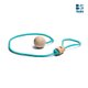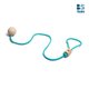 先将绳环套在一只脚踝上,当作轴心脚,试着将另一端的木球甩动,当绳子旋转经过另一只脚时跳起来,依着木球甩动的惯性,规律的单脚跳起,使身体也跟着律动起来。