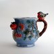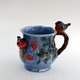 Porcelain mug handmade. Beautiful mug with stucco decoration and figurines of birds. Hand molding. Bullfinches on the branches of rowan and pine. The mug is made of blue porcelain. Decor in the form of cones and berries is complemented by relief painting. Gold detailing: sparkling snowflakes, icy cones. This mug seems to be made of ice: it shines and shimmers. Functional - for any drinks. This mug will serve as a bright, unforgettable gift for the winter holidays - New Year, Christmas, or simply, for a good mood, aesthetic pleasure. Single copy.