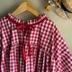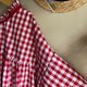 A cute dress with frills and ribbons. The red plaid is very eye-catching.