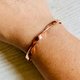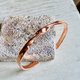 手工制作,专属定制充满纪念的最佳礼物,表面敲上不规则的水波纹纹路,手环内侧可以定制名字或是喜欢的英文字句,量身订作,给独一无二的你