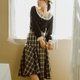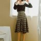 - 蕾丝衫上衣格子半身裙,显瘦原创设计师款
