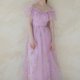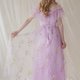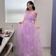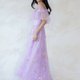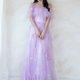 具童话情调的薰衣草紫色礼服,使用了刺绣薄纱面料和露肩设计。