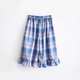 篮紫色为基调的格纹布料,视觉上就先达到降温效果,舒适的棉麻材质让宝贝穿着美美的同时也透气凉爽,宽裤设计结合荷叶下摆,让裤装中融入一点小甜美,搭配同系列上衣或简单T-shirt都能时尚又可爱。