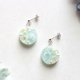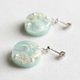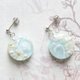 将花朵与珍珠封存于树脂中,以白色和银色描绘出大理石纹理,是一款惹人喜爱的耳环。