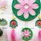 - This large pink dreamcatcher wall hanging can be a perfect above bed decor for a bedroom or a baby girl nursery, or an expecting mom gift. Its fresh botanical theme with yellow wooden birds will remind you of warm summer days year-round :)