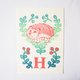 “H is for Hedgehog”手工版印明信片-刺猬 (abc字母明信片)