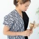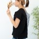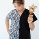 这件作品由黑色素面和白底锁链图腾拼接组成,黑白撞色的意象让整件作品穿起来神采奕奕。纯棉材质非常清爽,搭配合身牛仔裤、短裤或是日式宽裤都非常有个性。因锁链布料不分正反面,加上jul's手作服采用隐藏布料毛边,因此这件衣服前后正反里外都可以穿,大大增加早上赖床15分钟的好机会。只要简单套上,不用担心是否前后里外反穿,再搭上牛仔下着套上球鞋,就可以帅气出门。是衣柜内不可或缺的救急单品。