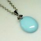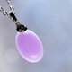 It is a gentle rounded oval pendant using mysterious color, lavender color opacity that changes the color at all depending on the intensity of ultraviolet light. Please enjoy it in various places and scenes by all means.