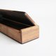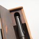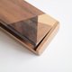 每款不同木材主体的笔盒,皆有着各异的质感、色泽及气味, 而盒面的几何图样、各式木材的色泽呼应,搭配耗时耗工的拼木技法,让此笔盒更加独特;木材温润的质感、俐落无凸起物的盒身简约设计、隐藏式纯铜轴心的盒盖开阖功能、简洁的侧边镶磁、滑顺的打开手势、盒内笔槽底部平铺柔软牛皮,让收纳爱笔这件事更温柔、安心及顺手。