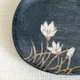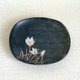 这是一幅在长方形的盘子上描绘在工房花园里绽放的玉垂的作品。