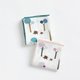 手帕有2种图案,共5种颜色。材质是纯棉的双层棉纱布。