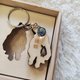 钥匙圈尺寸约为50mm x 50mm,毛发琉璃珠直径约9mm。由原木和COE104琉璃棒制成。