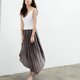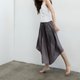 前后皆可当正面穿,一面是不规则的拼片设计,一面是抓皱细折设计,赋予它多重的面貌,而女人如花的千般娇媚,也就从这一片片的衣摆中孕育盛放。