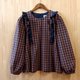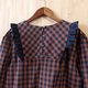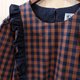 **圆领剪接荷叶边长袖上衣/ 橘蓝小格**