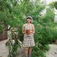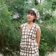 V领背心。正面设有贴袋。正面钮扣设计。 模特儿身高 163 厘米。