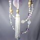 **1.图上紫罗兰古钱直径约23.2-27mm、厚6mm,坠下方蓝月光流苏约长85mm,项链链身长度(不含古钱与流苏)约72cm。**