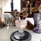 物品包括:黑色木底+玻璃罩+透明玻璃杯+粉红水晶石+闪爆锆石+干果枝