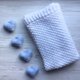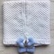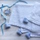 Hand made, knit baby blanket for newborn boy or girl. A wonderfull shower gift for the expecting parents makes a really cute New Mom or New Dad gift. Can be as take home or baptism gift for newborn boy and girl. Blanket and four toys, little blue or pink hearts which hang on the button. Can be different colors.