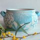 ◆ 湖水蓝的花形线条间,一笔笔透露白陶土的原色