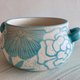 陶土、化妆土刻花、透明釉(1230度以上氧化烧)