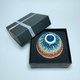此作品是透过四到五层不同的釉药层层堆叠,借由每层施釉厚薄拿捏,并窑烧至1260度,历经20小时的烈火淬炼,让它在窑里收缩流动,产生出孔雀羽毛的斑纹与流动感。
