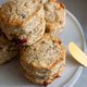 小麦面粉、全麦面粉、豆浆、玉米粉、自制纯素奶油、三温糖、日晒盐、泡打粉、英国唐宁女爵茶叶、蔓越梅干