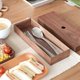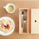 白调木质与工整木纹、呈现出清爽餐桌的枫木。可以采集芳醇香甜的糖浆的树种,正是与食相近的素材。光是有这盒子,瞬间就让平时的餐桌转变为时髦的咖啡店般。又因为是简约的设计,不只可作为刀叉盒,放入文具或饰品也非常棒。 不拘日式或洋式,无论怎样的室内空间都能使用的便利盒子,是小小的工房“BAU工房”所初出产的。大量使用严选的素材,质感彷如高级家具。美丽的作工,令人看了叹为观止。轻松地将真品的素材纳入生活中,尽情享受奢侈的时光吧。