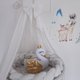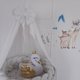 Сanopy 是迎婴派对或生日的绝佳礼物。 空气顶篷可以像婴儿床的蚊帐或儿童房间的绝佳配件。 最流行的粉末颜色是白色和象牙色。 婴儿床华盖、幼儿床顶篷、林地苗圃床上用品、床华盖、中性华盖、华盖