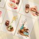 今天,我将介绍8种带有各种咖啡和甜点的插画明信片。