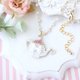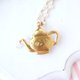 我们将树脂与玻璃水钻镶嵌在茶壶造型的黄铜零件中,再搭配珍珠链条,打造出这款极具女性魅力的项链。