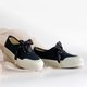 黑色帆布质朴的手感,搭配缎面鞋带呈现温柔的一面, 金色金属扣在低调的黑色中闪亮吸睛! 这是低调却难以忽视的反差美。
