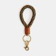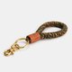 由皮革、黄铜、伞绳编织成的钥匙圈,充满outdoor户外风格的随身配件,黄铜扣件方便配挂于包包或是裤腰上,拿握在手中更可感受扎实的编织手感