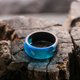 木质树脂戒指“Winterfell”由美国胡桃木和珠宝商的蓝色树脂制成。 冬天的森林在戒指里面,戒指在黑暗中发光。