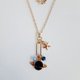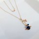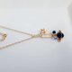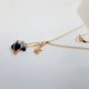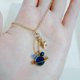 这是一款时尚的单点项链,在锋利的椭圆形箍下简单地结合了可爱的蓝色土星吊饰和两种类型的小玻璃珠。
