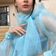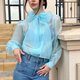 衬衫点缀着精致的领结设计,为任何造型增添一抹迷人的精致感。蓬松的袖子则带来了时髦且别致的风格,使其成为衣橱中不可或缺的百搭单品。轻盈飘逸的欧根纱材质,让您能随心所欲地搭配——可与裙装叠穿,亦可搭配牛仔裤,打造出随性又不失格调的造型。