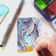 - Elephant painting is sold in a set of two art card ACEO. The size of the ACEO is 3.5 by 2.5 inches. A small art card with animals is painted in watercolor paints. ACEO with mom and baby elephant is a finished artwork.