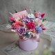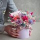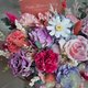 使用干燥花、索拉花及日本进口永生花材。百花盛开的桌花,除了为家中妆点雅致浪漫的氛围,也可在索拉花上滴些精油,让空间充满着喜爱的香气。 ▪︎含花材尺寸W24*D20*H21cm ▪︎加购提袋为25*25*25纯白开窗礼袋