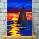 主题:船画帆船原创艺术海洋画帆墙艺术丙烯酸小画夏威夷画檀香山原创艺术帆船Impasto画船海景丙烯酸小画8乘12 MyrikArt