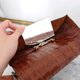 小巧精致的鳄鱼皮袋,最适合去约会搭配牛仔裤,随性又不失高贵。整体有七成新,肩带有几个小洞可以调节长度,内部是绒面材质,有两个主格和两个拉链格,还配上一块小镜子。放个零钱包、电话和法国女人最爱的红唇膏就刚刚好,谁说小袋子不实用呢?