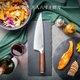 - 叶添 匠人八寸主厨刀 前长后宽的设计,让一把刀身上由“前窄”到“后宽”,变化性大,能适应各种刀法的应运,如此厨师就能在同一把刀上更随心所欲的操作。 匠人系列:高端厨刀系列,采用复合钢技术,钢芯选用VG10,硬度达HRC60±2