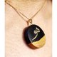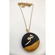 木制手工吊坠。镶嵌 18K 金。 项链。 乌木