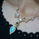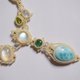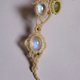 尾扣: 橄榄石 + 月光石 + 橄榄石; 海蓝宝 + 月光石 + 海蓝宝;