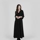 - 长洋装化繁为简, 透过简单精巧的腰线剪裁, 展现出流丽优雅的身体线条。 V领门襟采用交叠式剪裁,重塑经典元素, 俐落勾勒出时尚的古典韵味。
