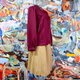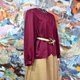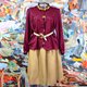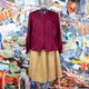 **酒红色刺车花绣领口宽松开胸外套附肩垫 优雅贵妇 日本中古古着**